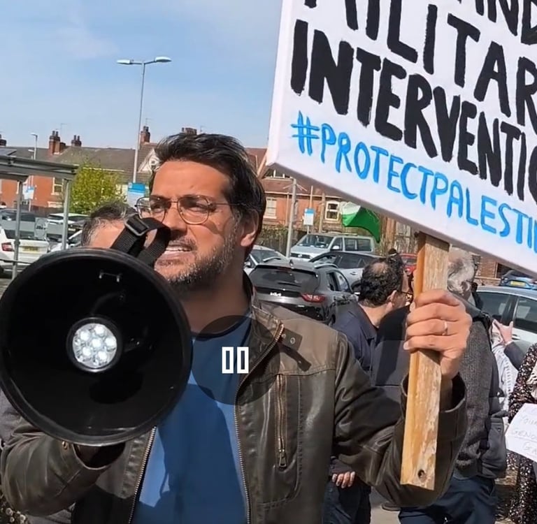 Annoucement of the launch of Protect Palestine was made a street demonstration on 12th April 2025. A call was made to members of the public to endorse the campaign to establish a military intervention to stop the genocide.