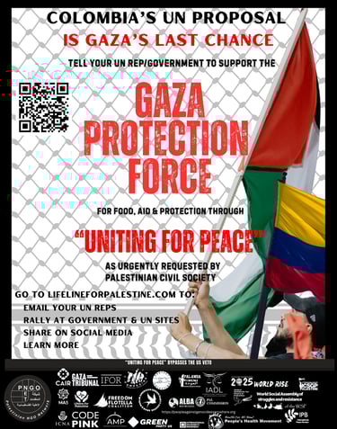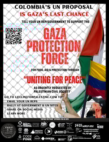 We are extremely pleased that in September 2025, the Palestinian NGO Network declared support for the proposal made by Colombian President Gustavo Petro for a non-UN armed protective force for Palestine to dismantle Israel's historic and unlawful occupation of Palestine. This means that the campaign's message has been escalated to a state level and is being driven by Palestinians inside Palestine.