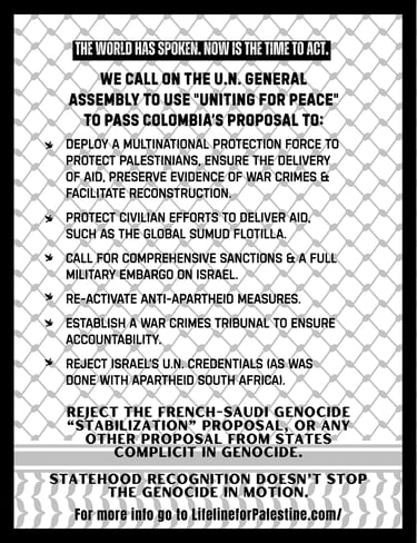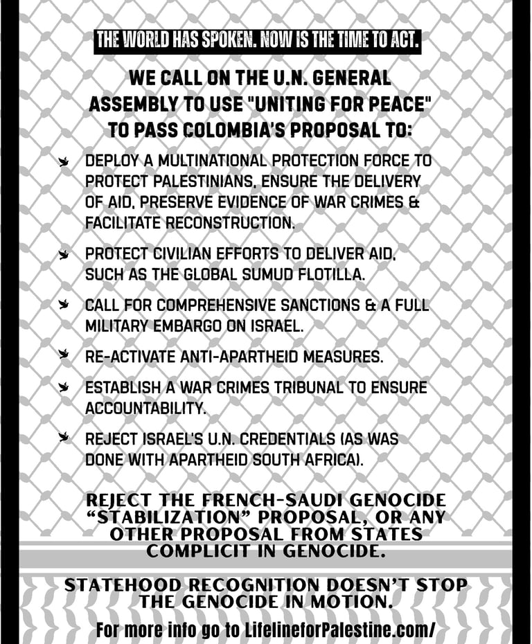 We did however support the Colombian proposal made while President Gustavo Petro was attending the UNGA, also supported by other states in the Hague Group for Palestine, to establish a non-UN armed protective force to actually support the Palestinian armed resistance and fully dismantle Israel's occupation of Palestine.
